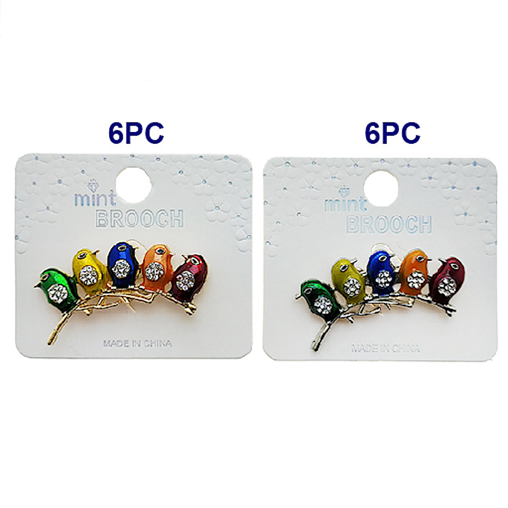 Enamel Perched Birds Brooch