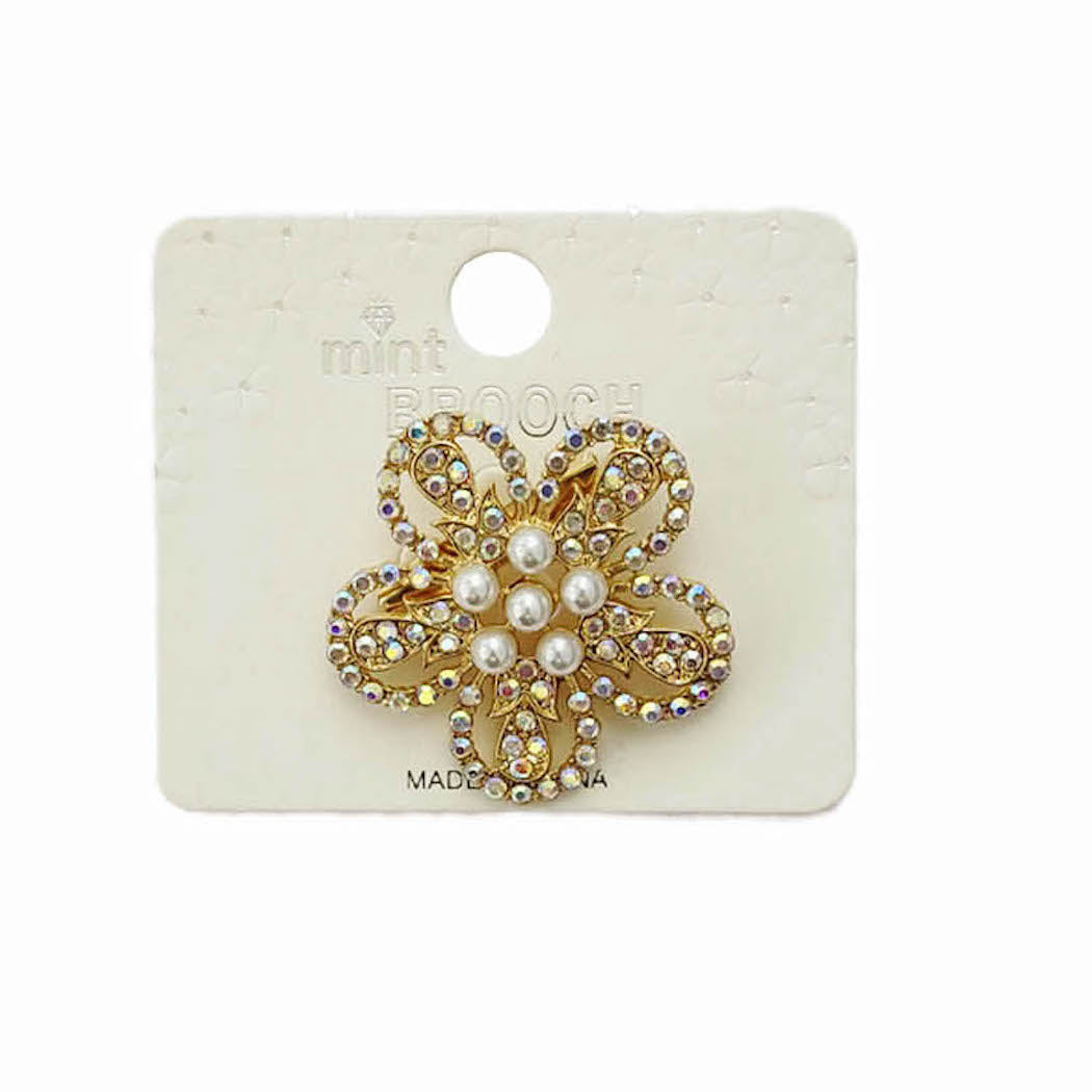Rhinestone Flower Brooch