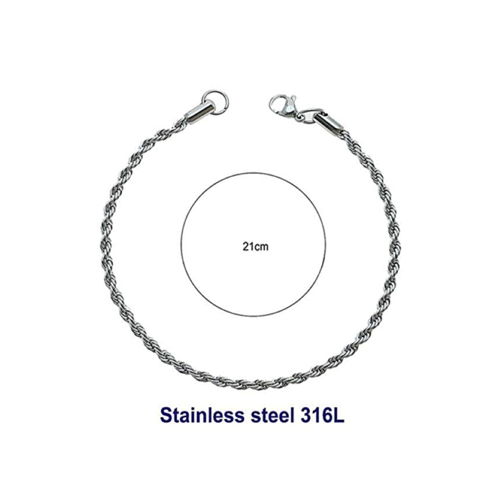 Stainless Steel 6MM Silver Rope Chain Bracelet